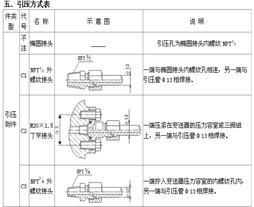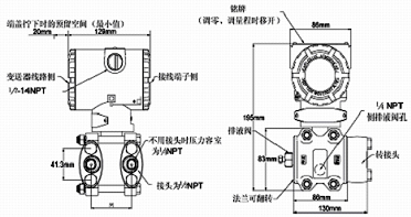 例:TDSB3051差壓變送器,量程0-300kpa,兩線制4~20 mA DC信號輸出,法蘭接頭、排氣/排液閥、隔離膜片均為316不銹鋼智能表顯示器,管裝平支架,泄放閥在壓力室側(cè)面的,橢圓接頭內(nèi)螺紋NPT 1/2