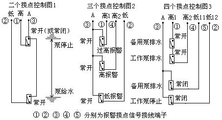 2)、二個(gè)報(bào)警信號(hào):接點(diǎn)為常開,位置出廠設(shè)置在最高和最低位置;三個(gè)報(bào)警信號(hào):均為常開,高2設(shè)在 50%,四個(gè)報(bào)警信號(hào):高1高2為常開、低11低12為常閉,高2設(shè)在85%、低12設(shè)在15%,接線端見(jiàn)下圖,若有不同要求請(qǐng)說(shuō)明,報(bào)警位置用戶也可自行調(diào)整。